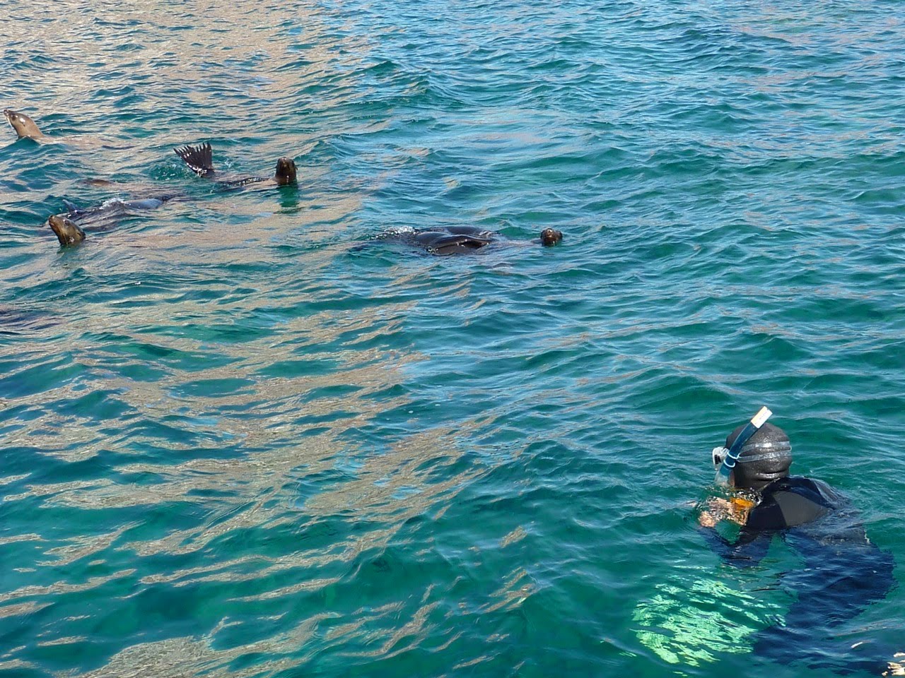 One sea lion became somewhat aggressive and chased Vicki and Karen for awhile. It actually bit Karen on the upper arm and punctured her wet suit. Other than that, it was a joy to be close to these animals!